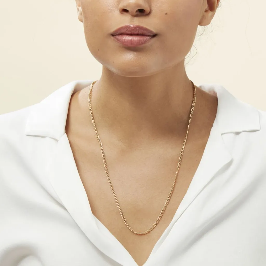 Collier Or Jaune 375/1000 Maille Marine Plate Largeur 3.05mm 45cm