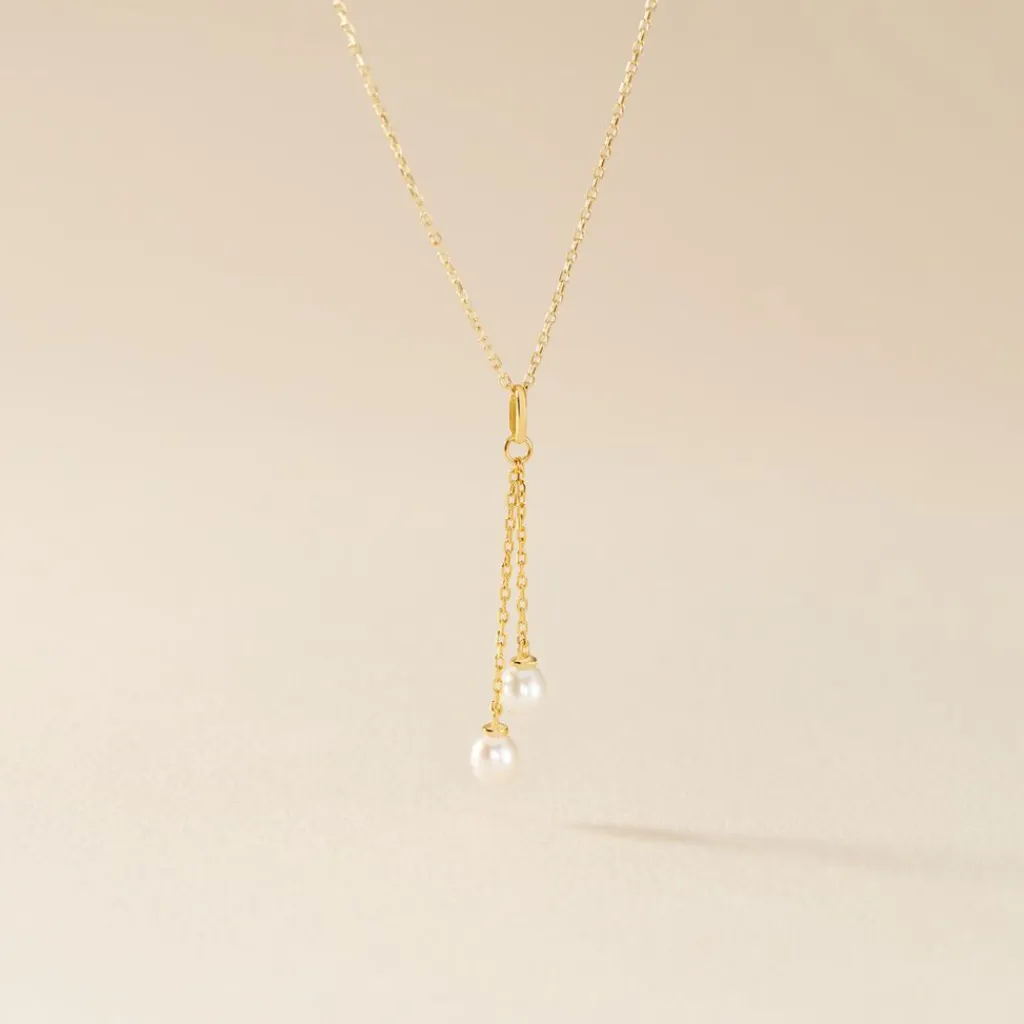 Collier Or Jaune 375/1000 Perles De Culture 2 Fils 4.5mm 42cm