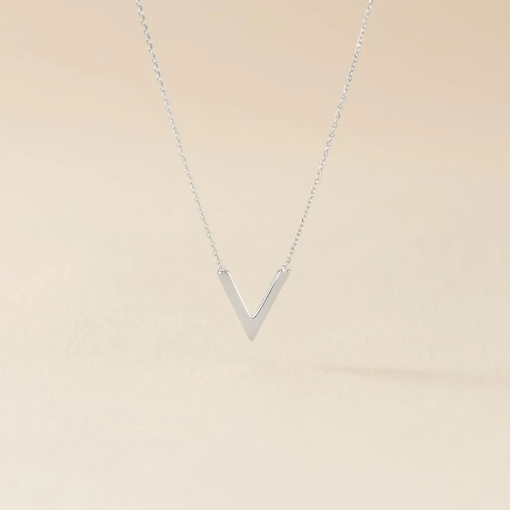 Collier Or Blanc 375/1000 Forme V Pm Maille Forcat 40+2cm