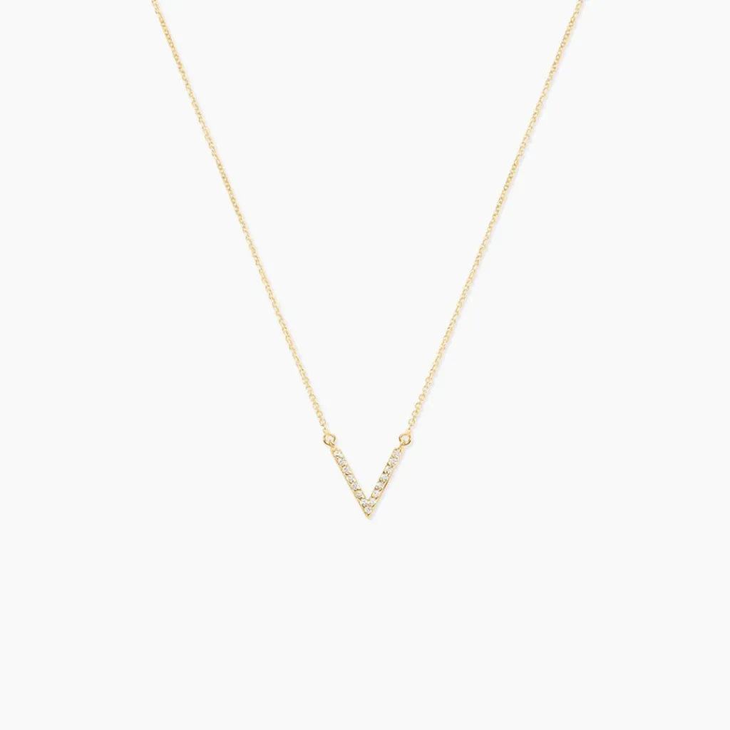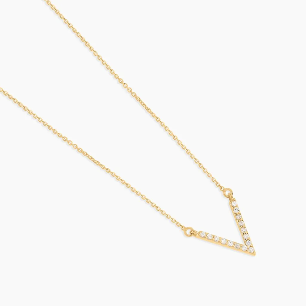 Collier Or Jaune 375/1000 Forme V Oxydes De Zirconium 42cm