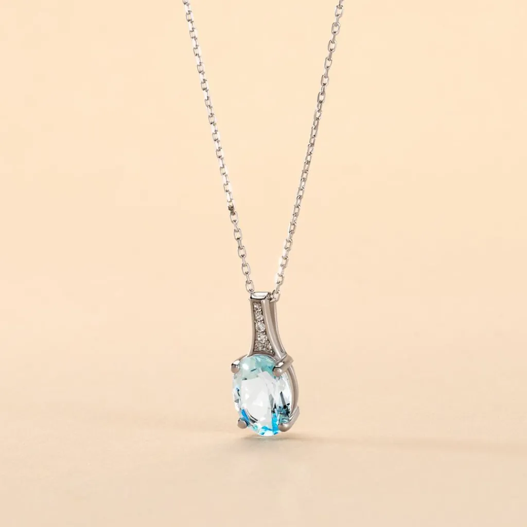 Collier Or Blanc 375/1000 Topaze Et Oxydes De Zirconium 42cm