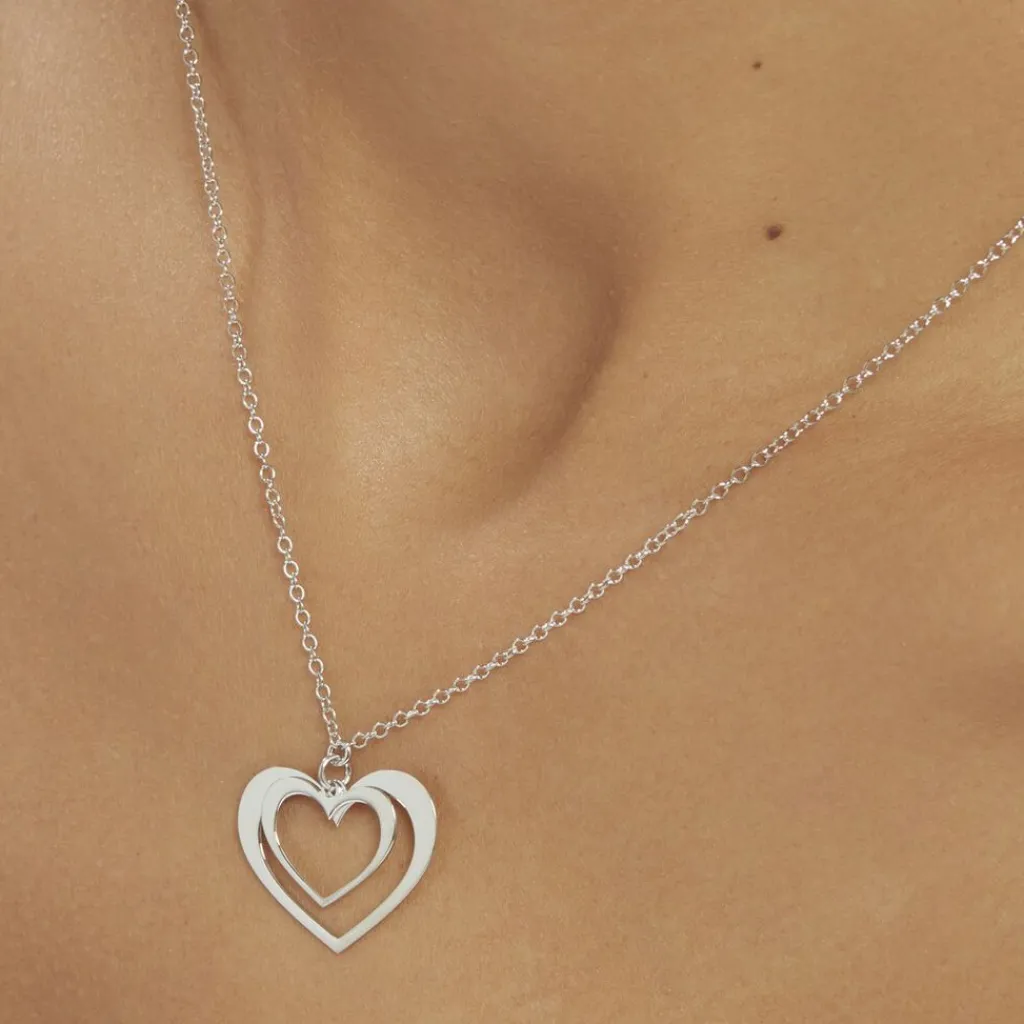 Collier Argent Blanc 925/1000 Double Coeurs Ajoures Maille Forcat 45cm