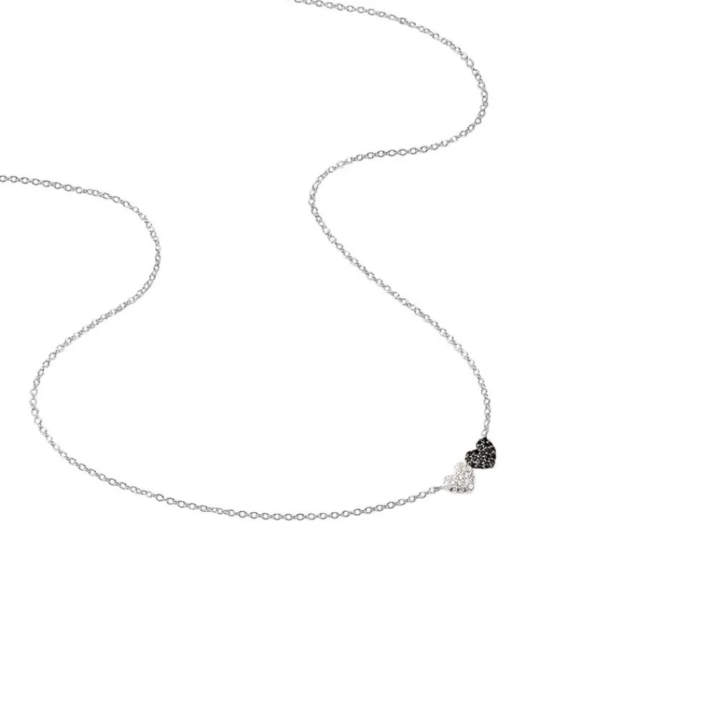Collier Argent 925/1000 clementine Double C艙urs Pavage Oxydes De Zirconium Noirs Et Blancs 45cm