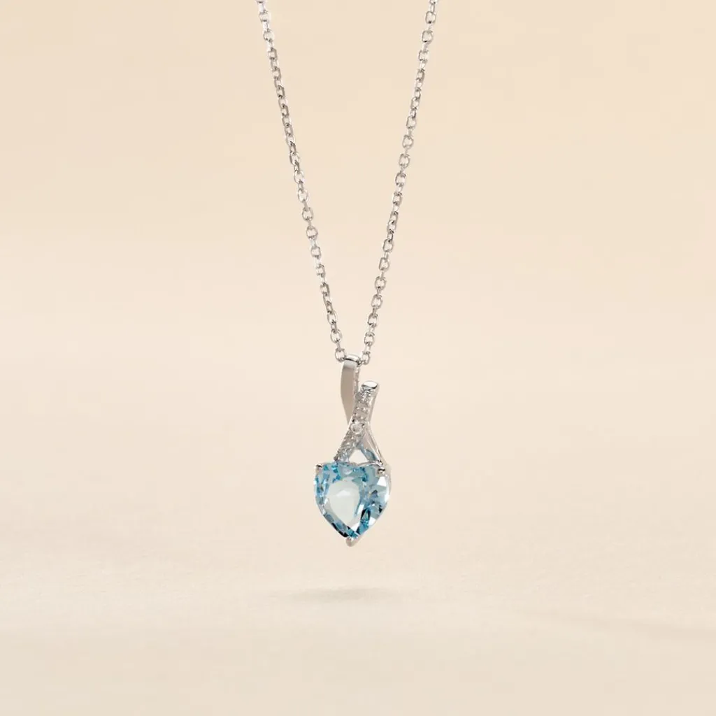 Collier Or Blanc 375/1000 Clothilde Topaze Bleue Forme C艙ur Et Oxydes De Zirconium 42cm
