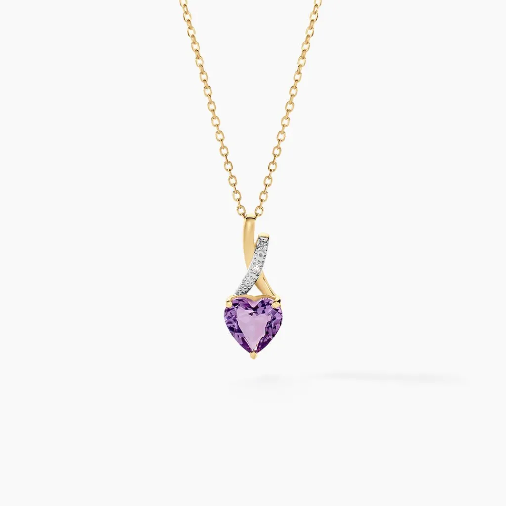 Collier Or Jaune 375/1000 Clothilde Améthyste Forme C艙ur Et Oxydes De Zirconium 42cm