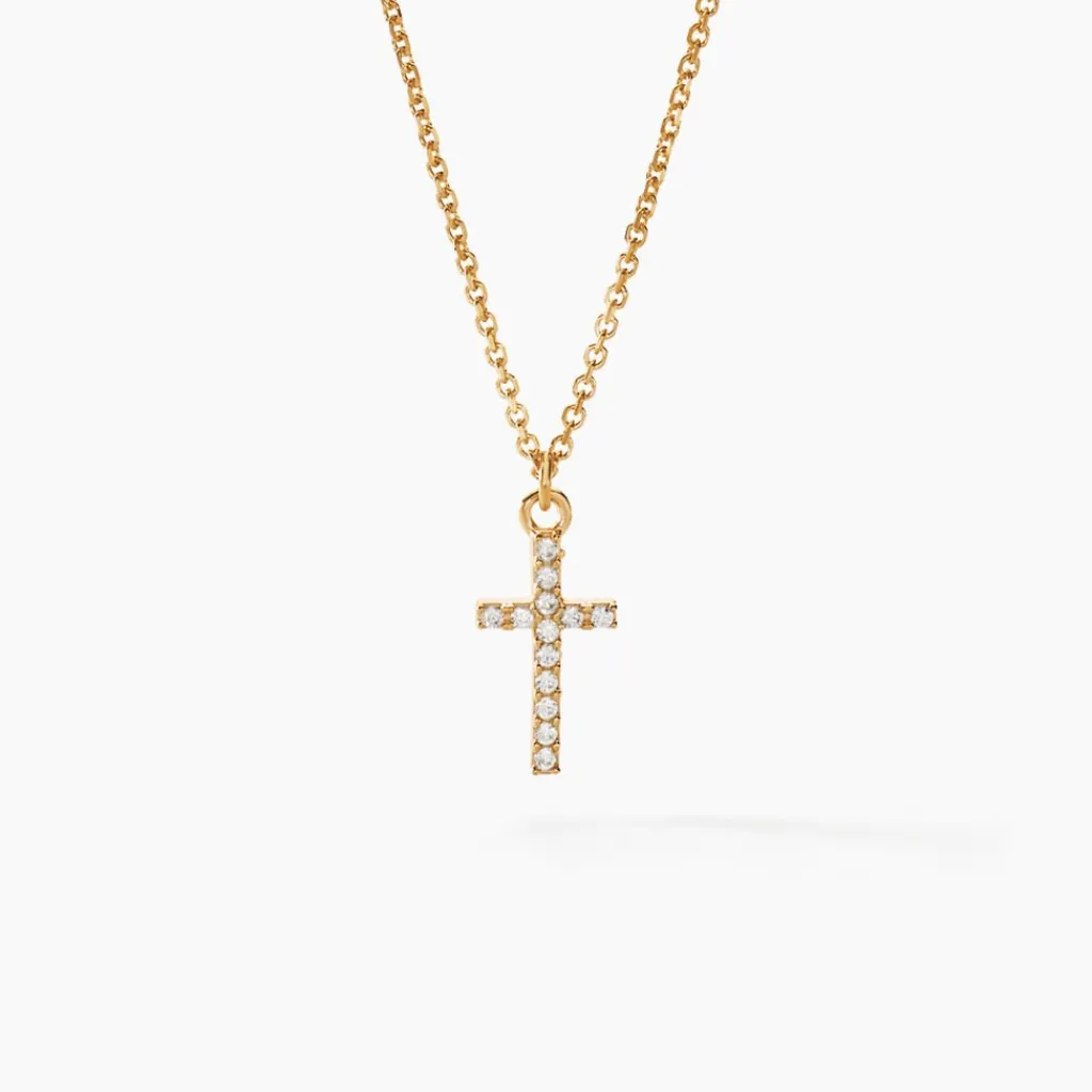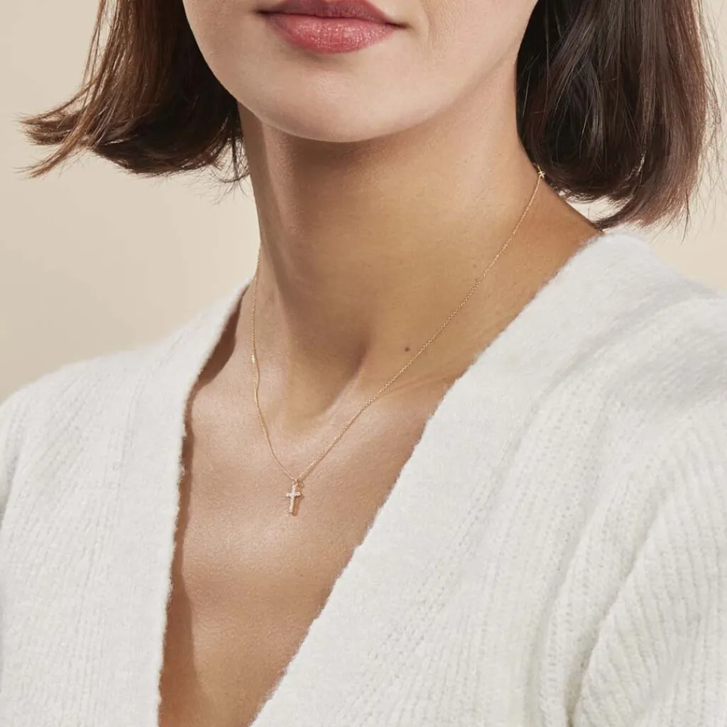 Collier Or Jaune 375/1000 Motif Croix Oxydes De Zirconium Maille Forçat 42cm