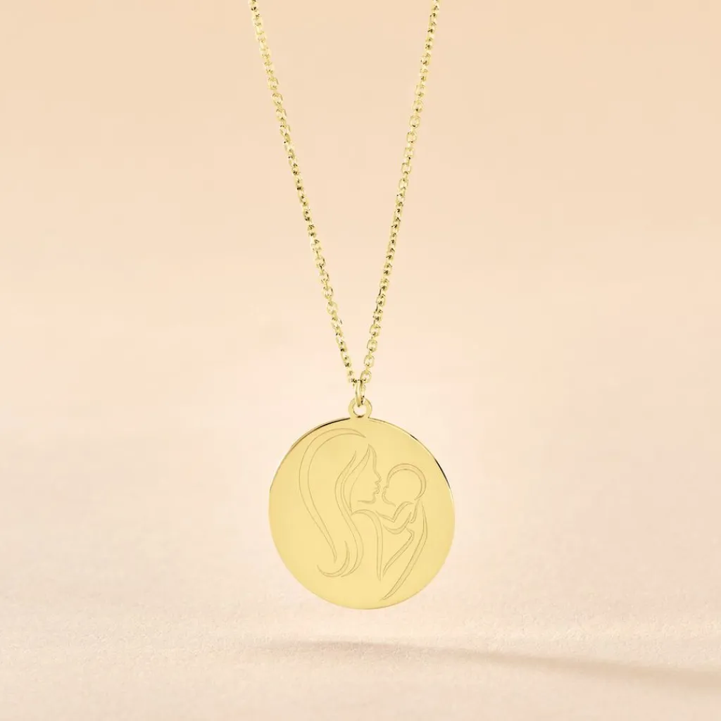 Collier Or Jaune 375/1000 Pastille Maman Et Enfant 42cm