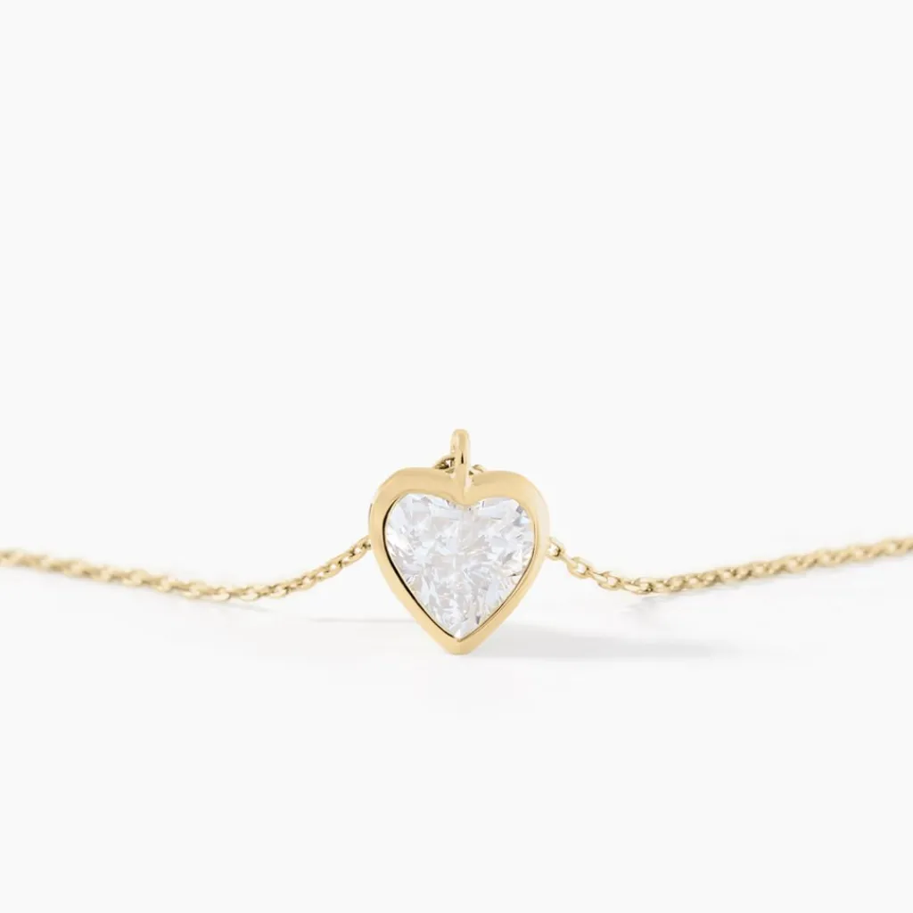 Collier Or Jaune 375/1000 Maille Jaseron Forme C艙ur Oxyde De Zirconium Serti Clos 40cm