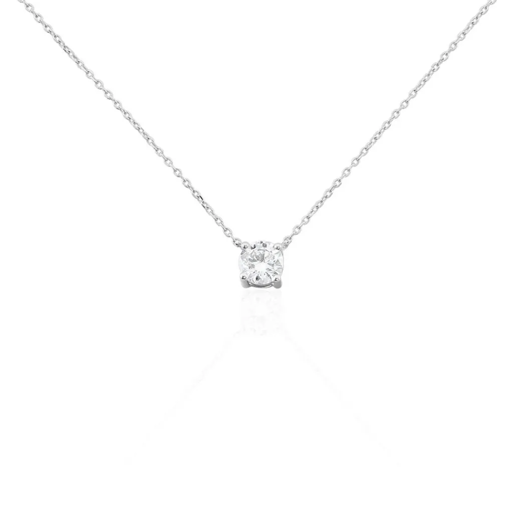 Collier Or Blanc 750/1000 Solitaire Maille Forcat Diamant Synthétique 0.41ct 45cm