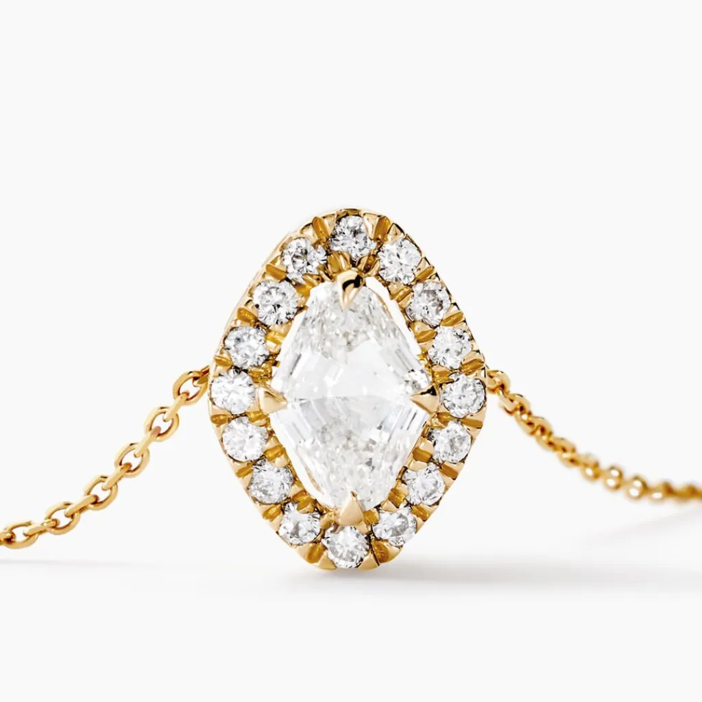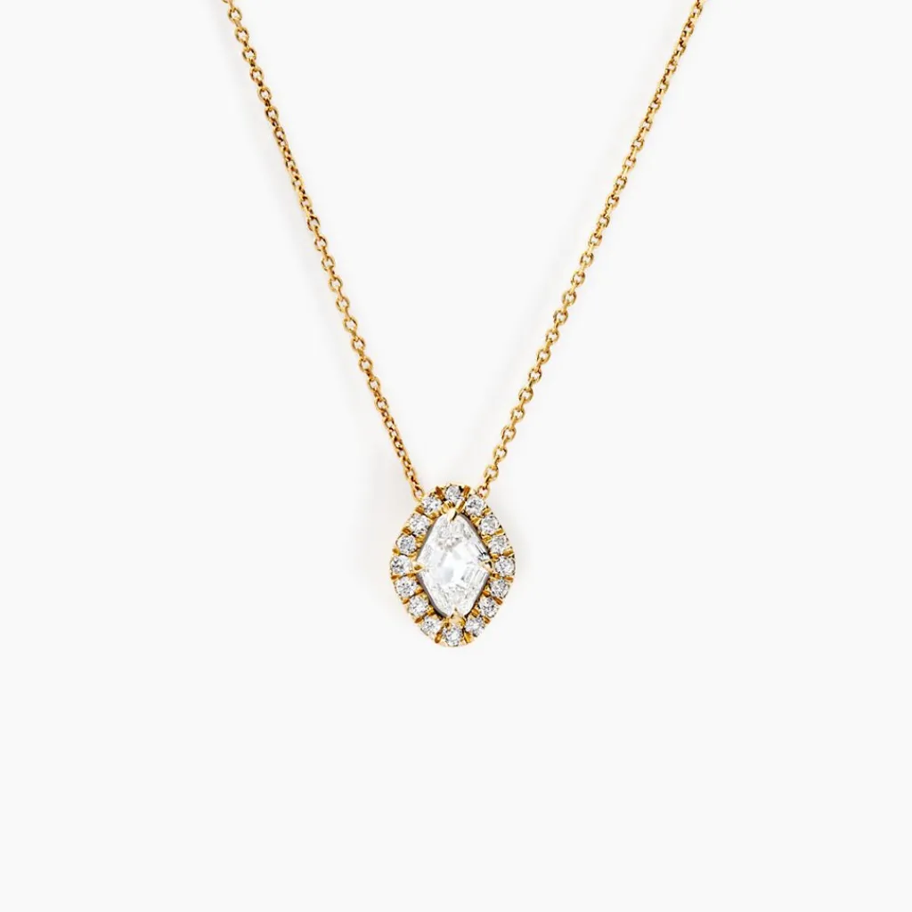 Collier Or Jaune 750/1000 Losange Entourage Diamants Synthetiques 0.5cts Sertis Griffes Forcat 42cm