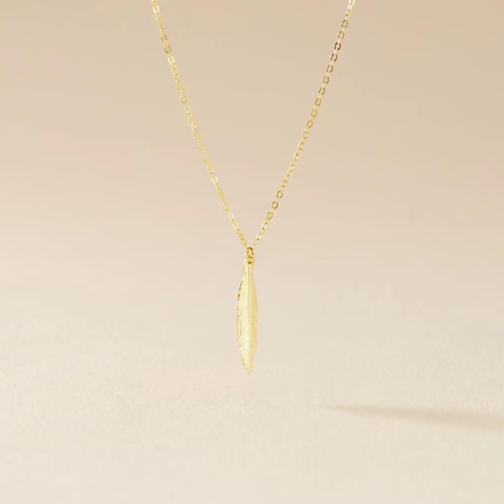 Collier Or Jaune 375/1000 Plume Maille Forcat 40+2cm