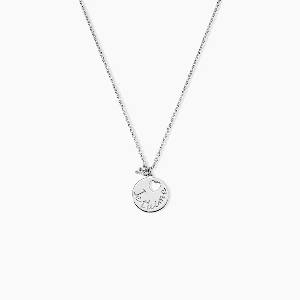 Collier Argent 925/1000 Pastille Je T’aime Et Oxyde 45cm