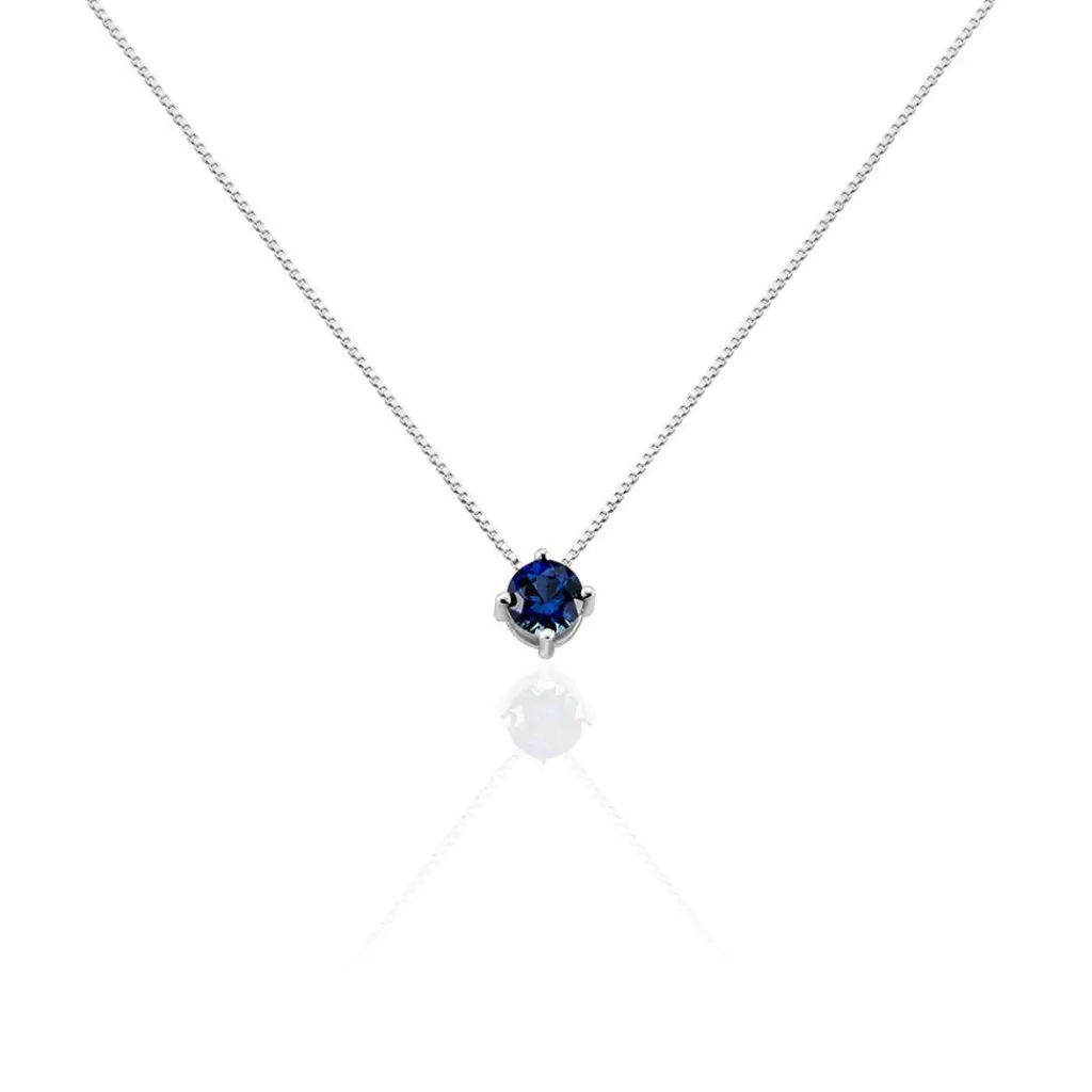 Collier Solitaire Argent 925/1000 Oxyde De Zirconium Bleu Serti 4 Griffes 5mm Maille Venitienne 45cm