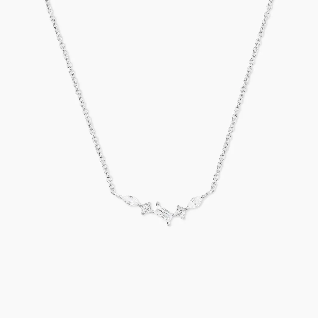 Collier Argent Blanc 925/1000 Oxydes De Zirconium Tailles Baguettes Et Navettes Maille Forcat 42+3Cm