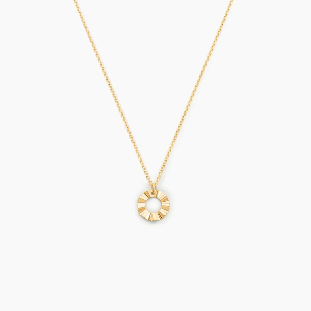 Collier Or Jaune 375/1000 Cercle Ajoure Froisse Maille Jaseron 40+2cm
