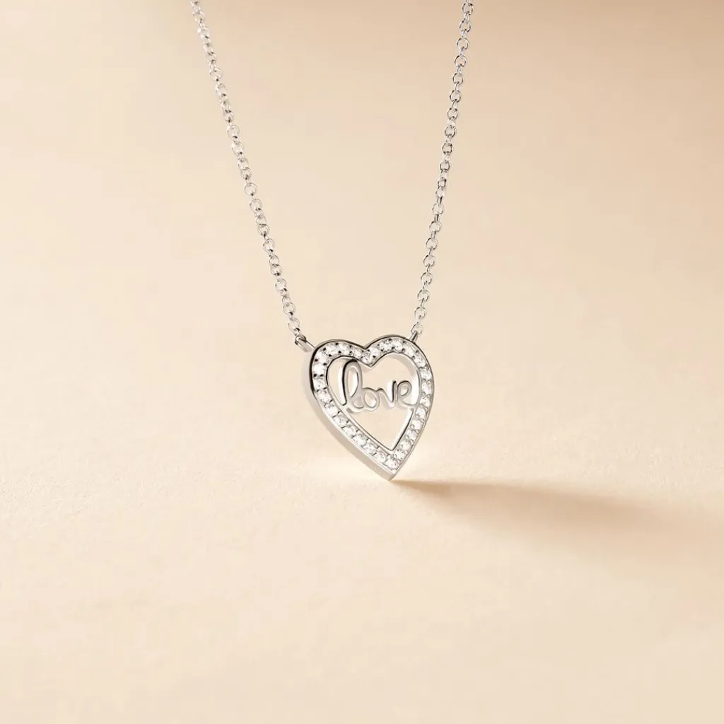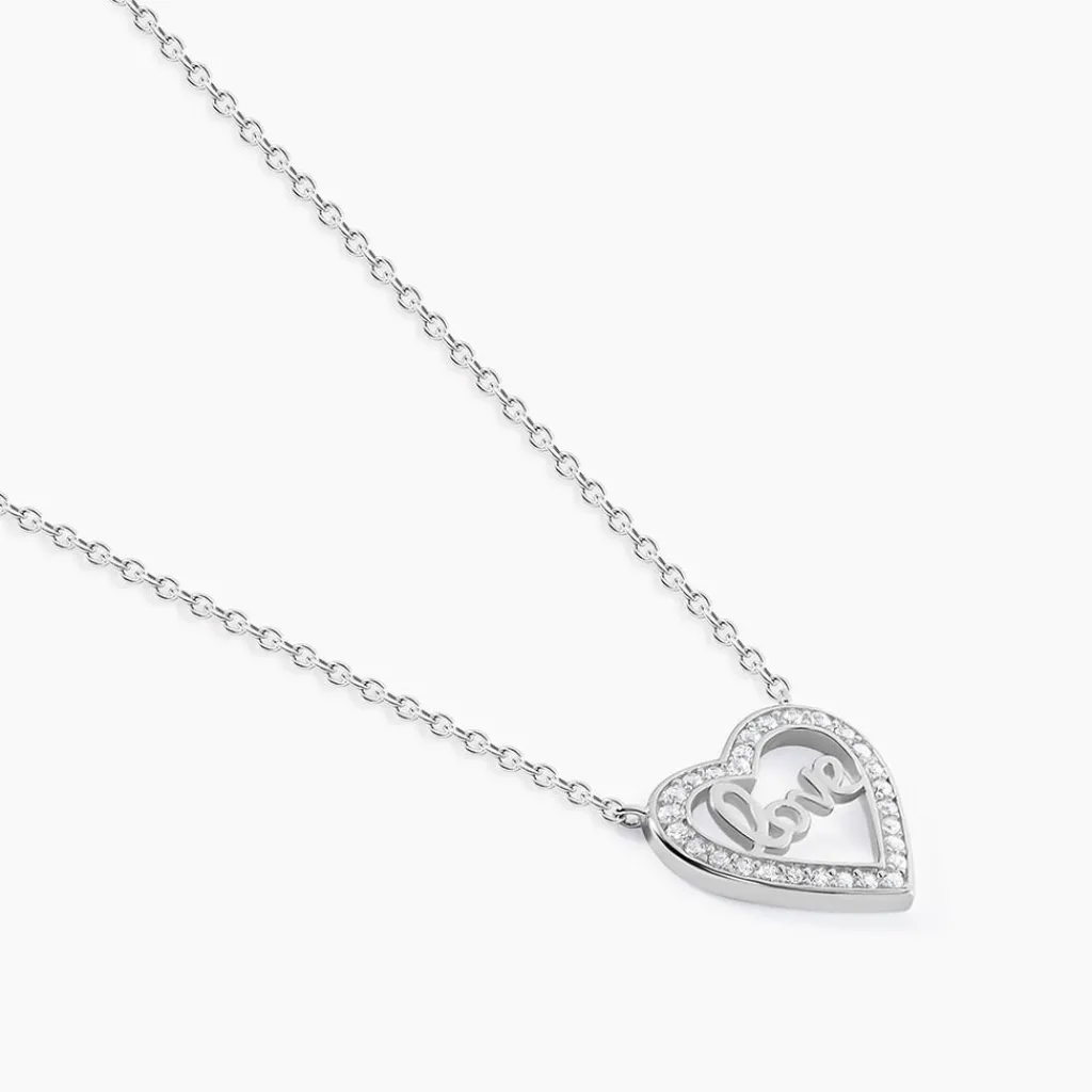 Collier Argent 925/1000 elansa Motif Love Coeur Ajoure Avec Oxydes De Zirconium 45cm