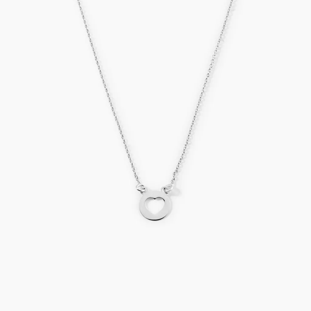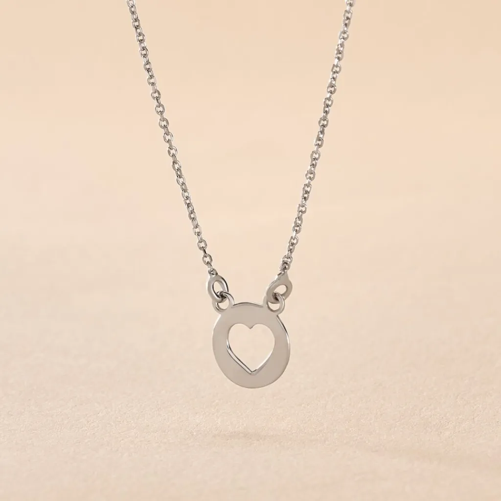 Collier Argent Blanc 925/1000 Pastille Motif Coeur Ajoure Maille Forcat 40cm