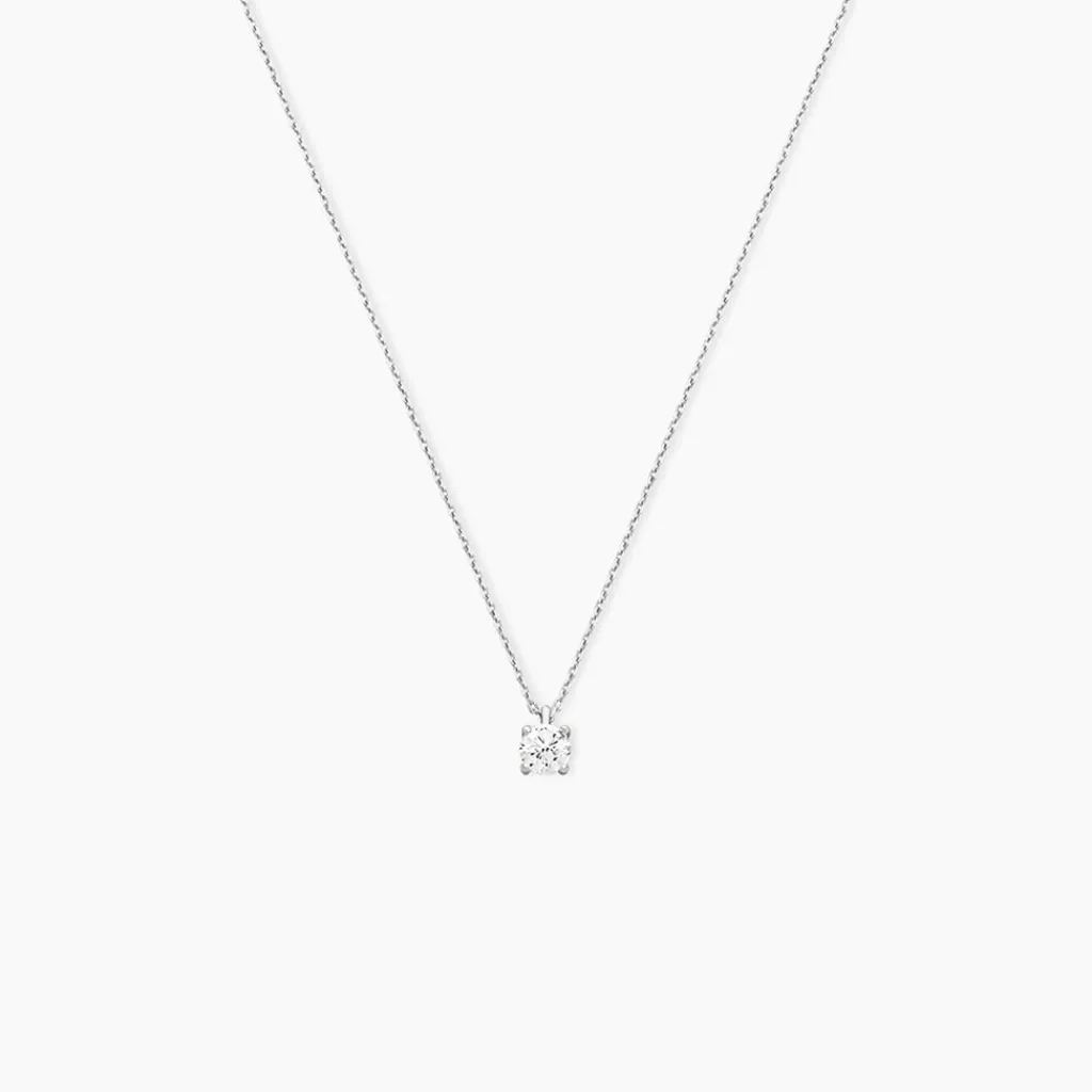 Collier Or Blanc 750/1000 Diamant 0.33cts Diamant Serti 4 Griffes Beliere Mobile Maille Forcat 40+2cm