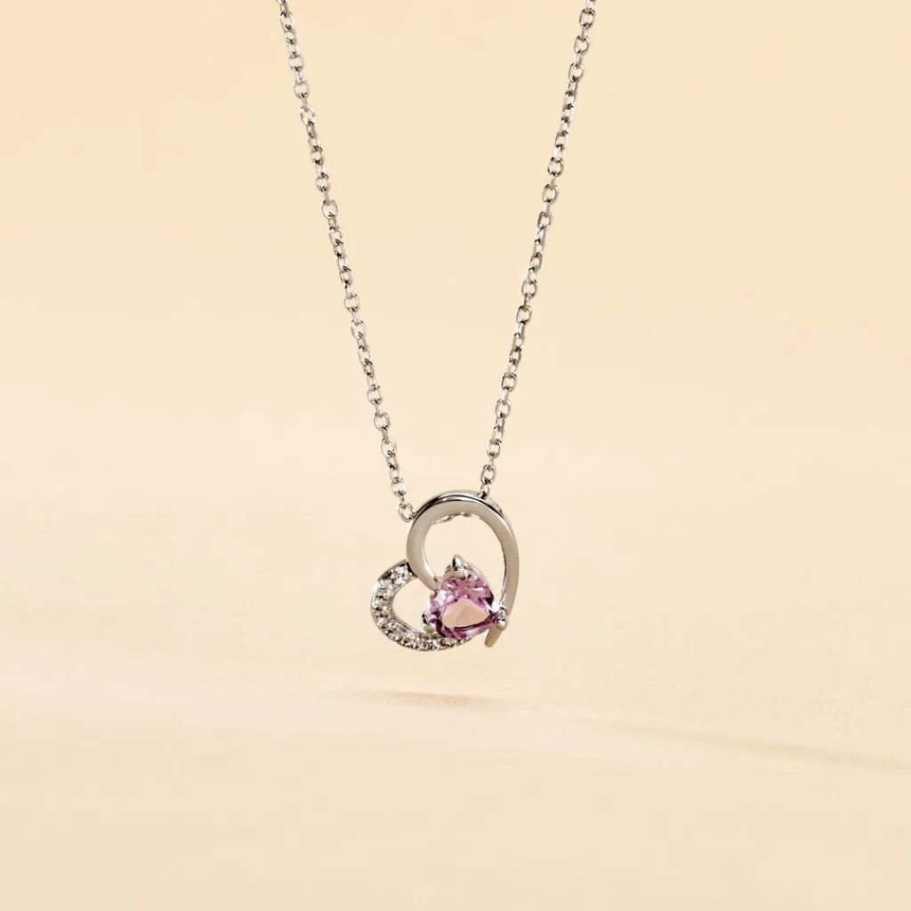 Collier Or Blanc 375/1000 Forme C艙ur Améthyste Centrale Et Oxydes De Zirconium 42cm