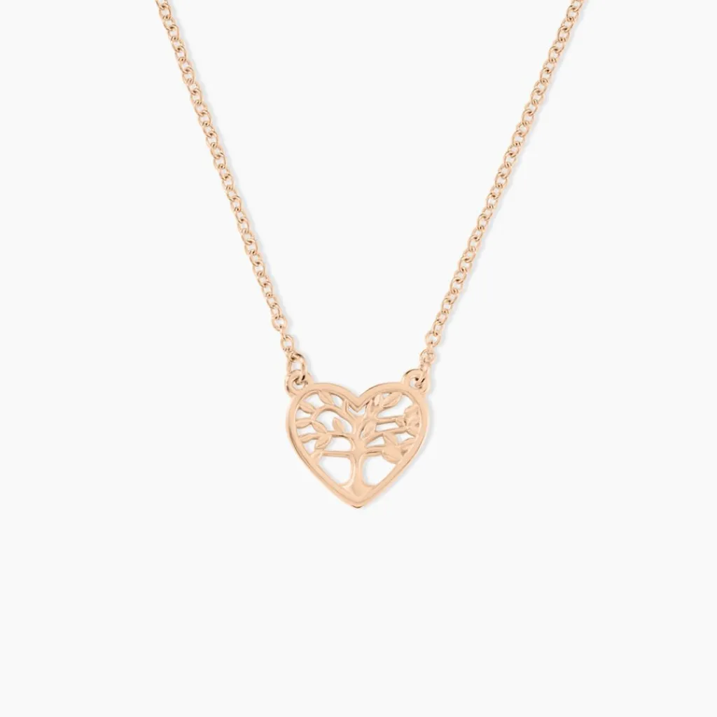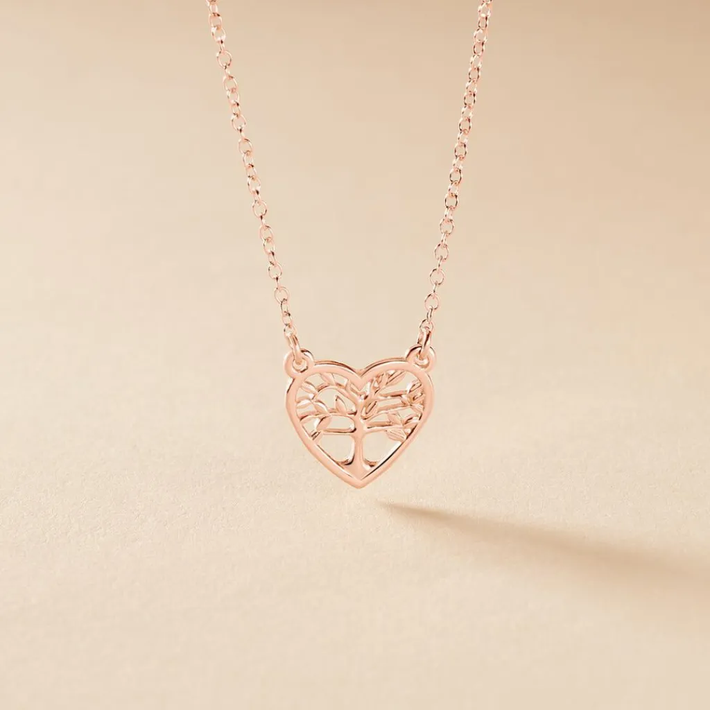 Collier Argent Rose 925/1000 Arbre De Vie Coeur Maille Forcat 40cm