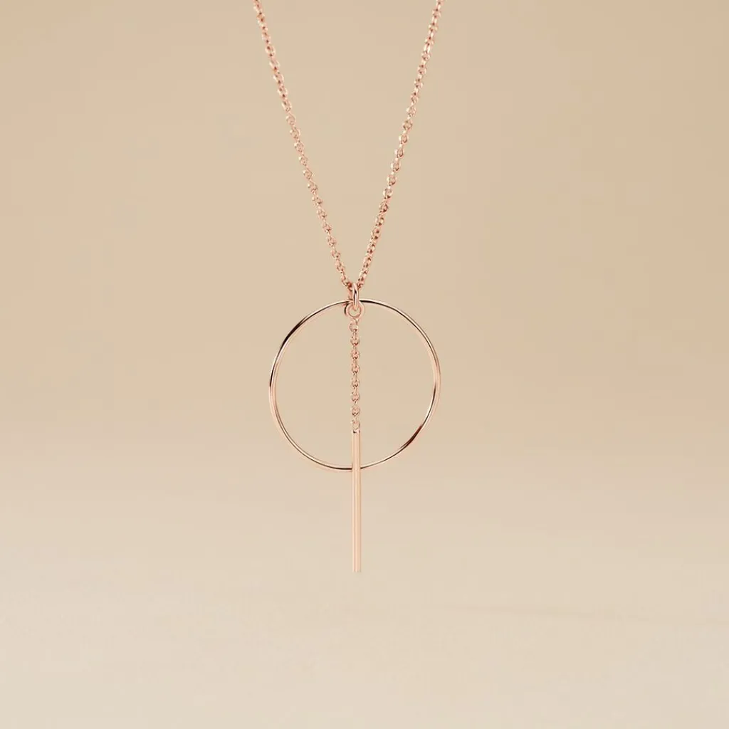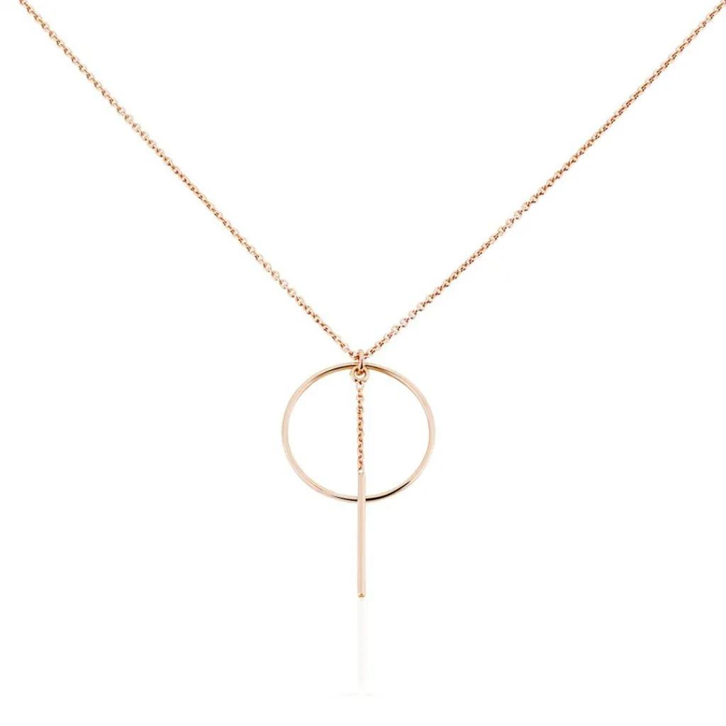 Collier Argent Rose 925/1000 Cercle Ajoure Barrette Pendante Maille Forcat 45cm