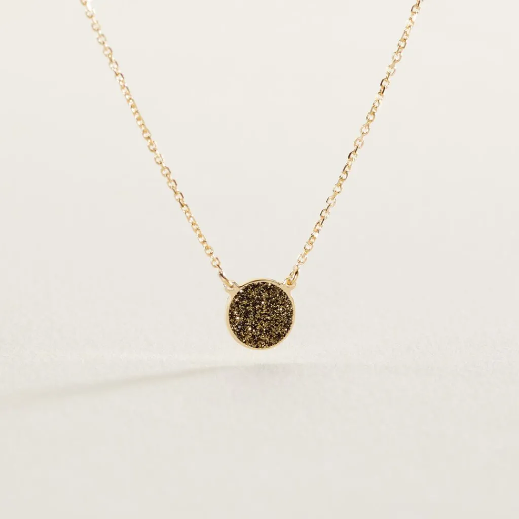 Collier Or Jaune 375/1000 Pastille Glitter Bronze Maille Jaseron 40+2cm