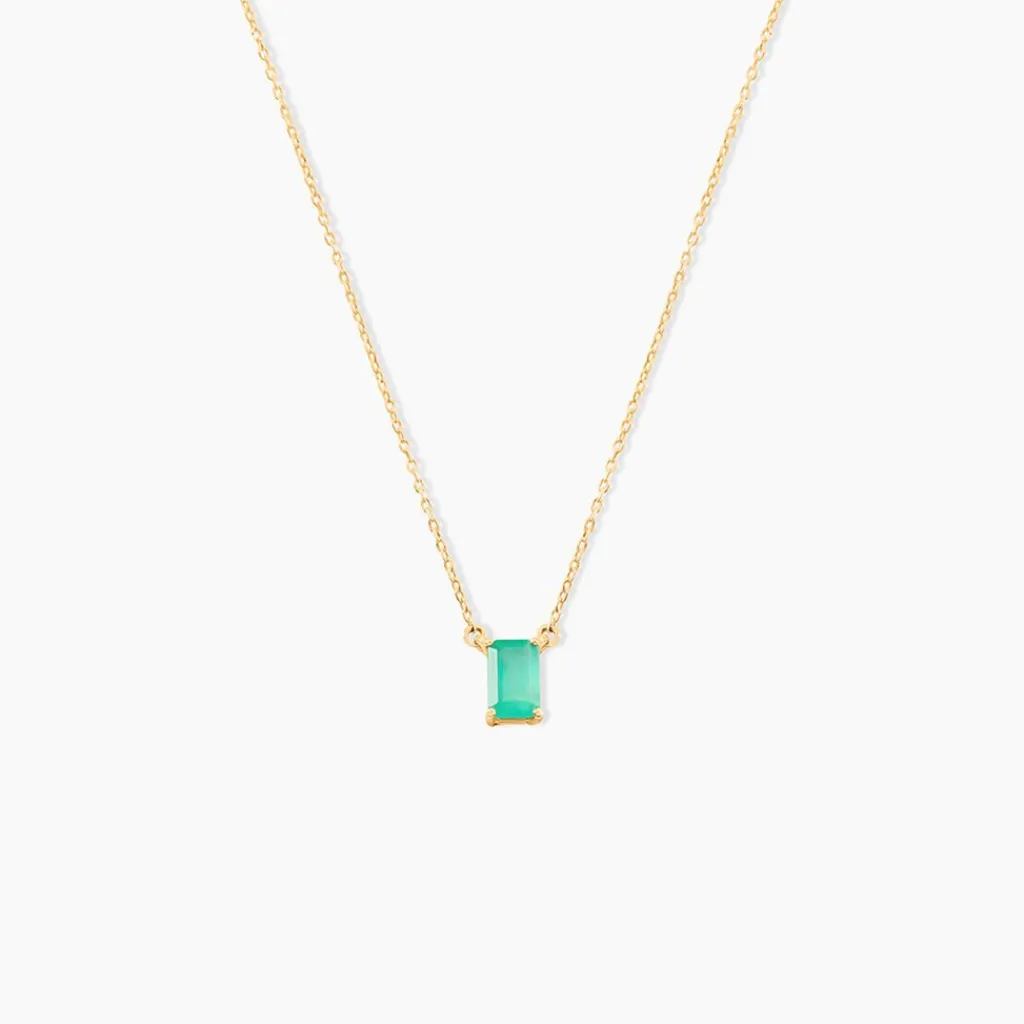 Collier Or Jaune 375/1000 Emeraude Forme Rectangle Serti Griffes 0.55cts Maille Forcat 40+2cm