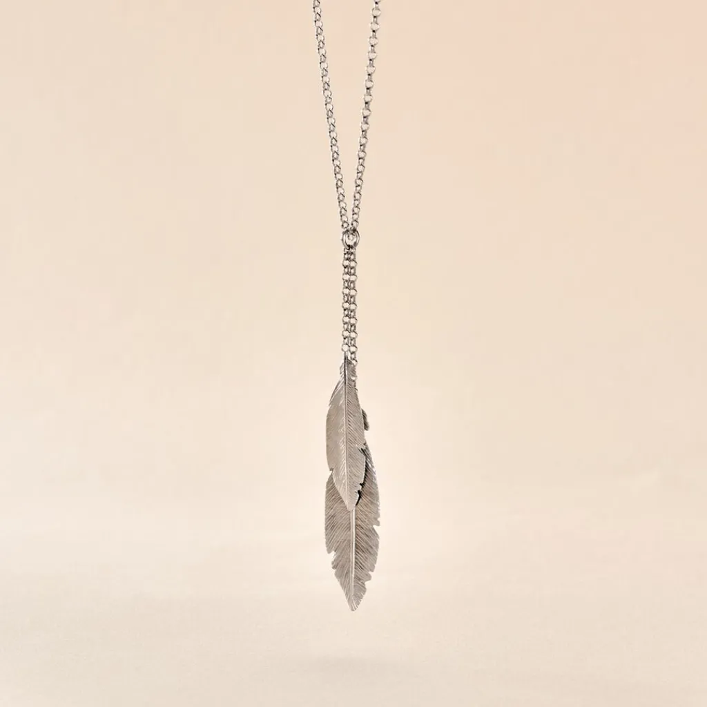 Collier Argent Blanc 925/1000 Forme Cravate Plumes Maille Forcat 45cm
