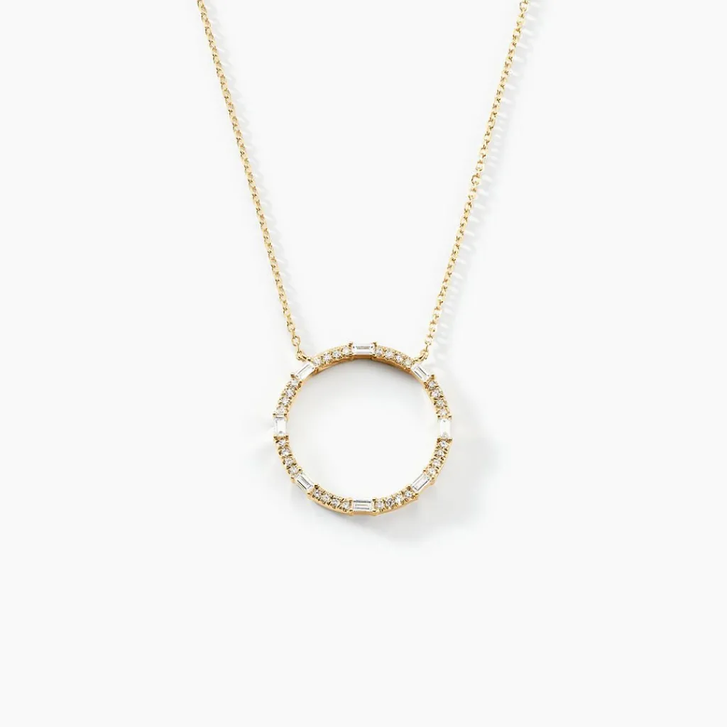 Collier Or Jaune 375/1000 Cercle Ajoure Diamants Baguettes 0.13cts Sertis Griffes Et Pavage Maille Forcat 40+2cm