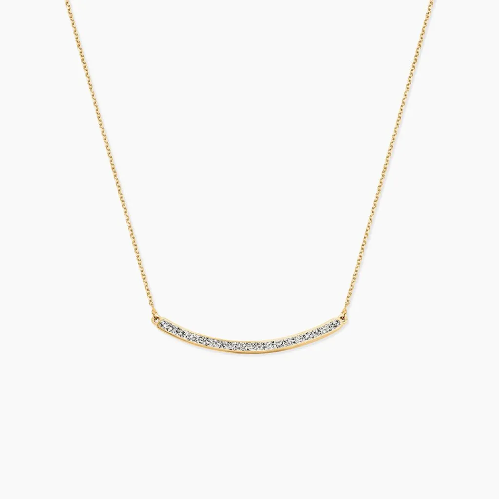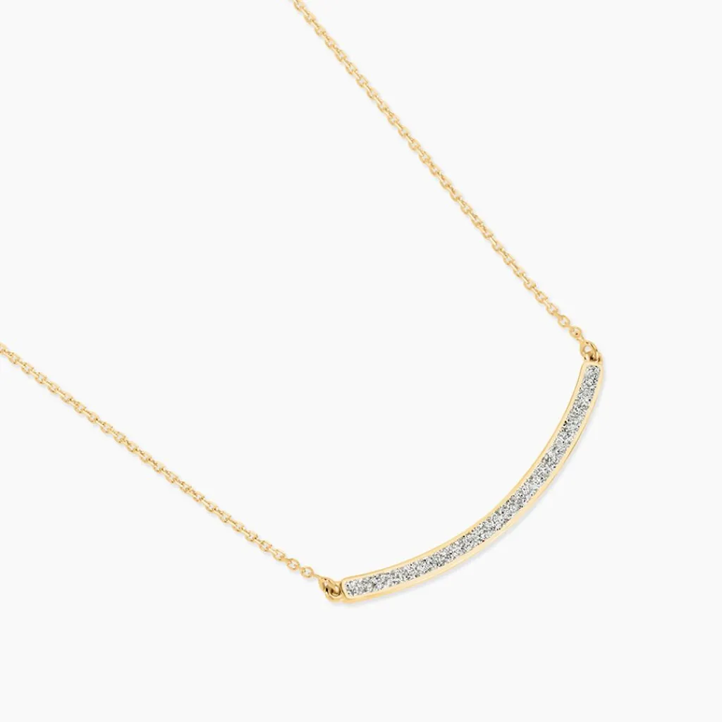 Collier Or Jaune 375/1000 Barrette Courbee Glitter Argente Maille Jaseron 42cm