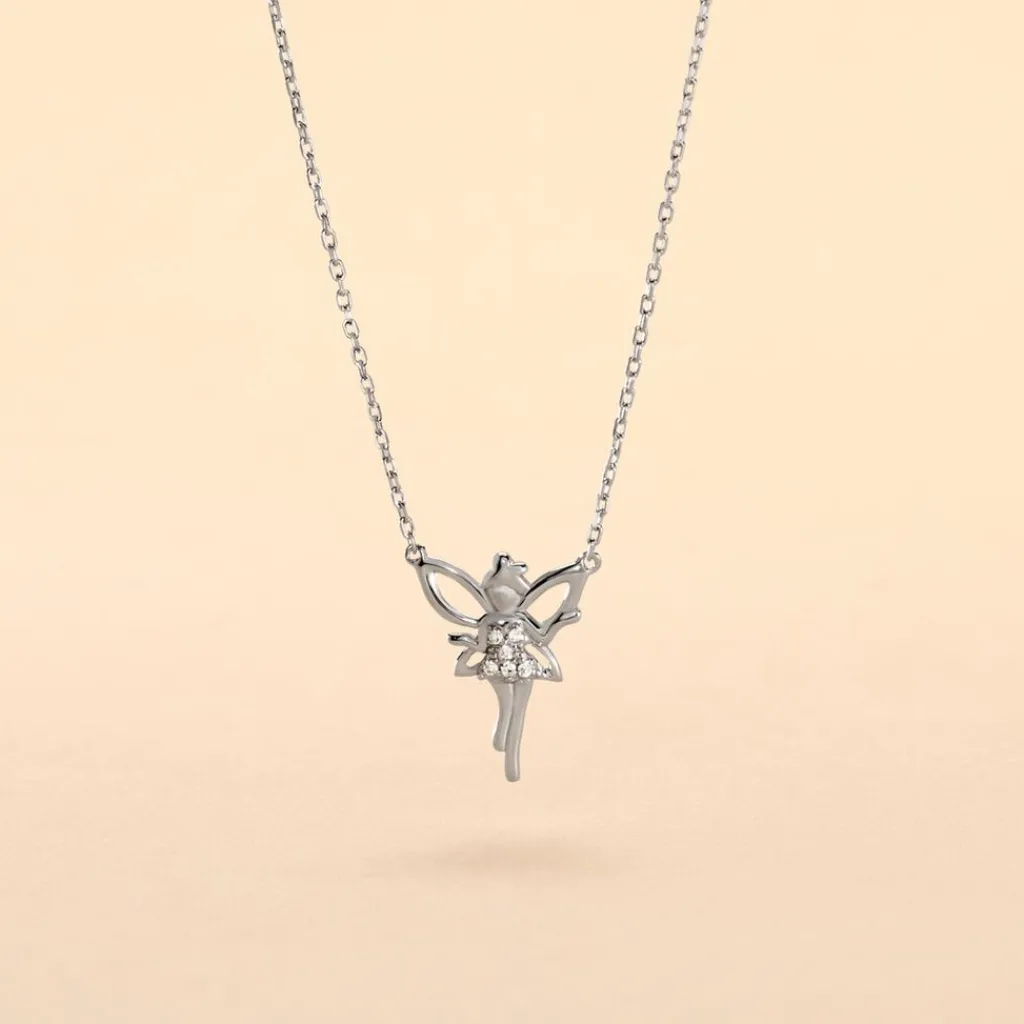Collier Or Blanc 375/1000 Fée Diamants 42cm