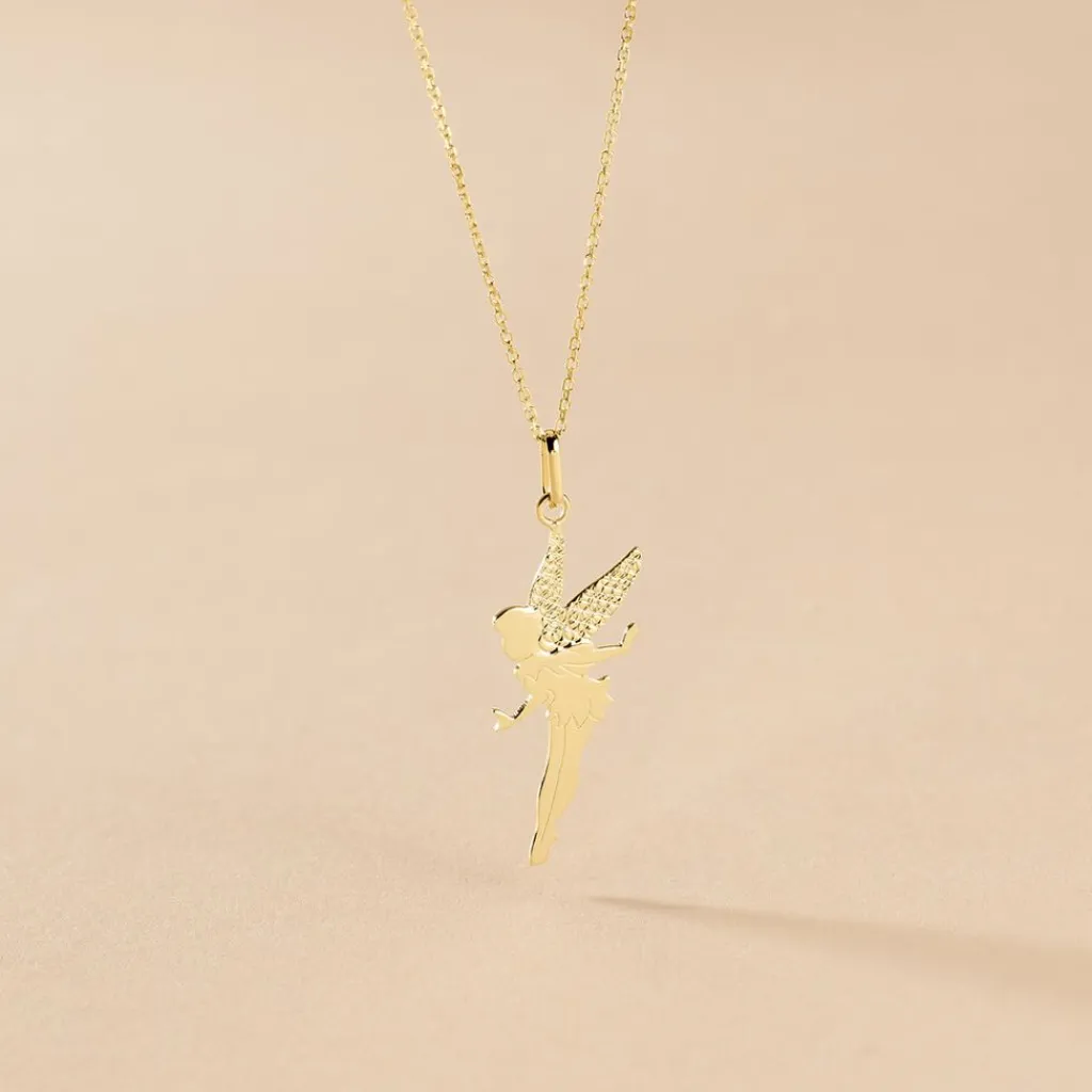 Collier Or Jaune 375/1000 Motif Fee Maille Jaseron 40+2cm