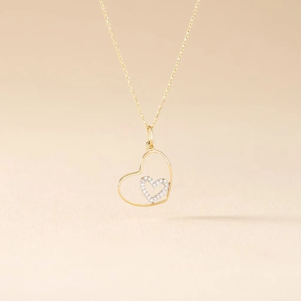 Collier Or Jaune 375/1000 C艙ur Double Oxydes De Zirconium Maille Forçat 42cm