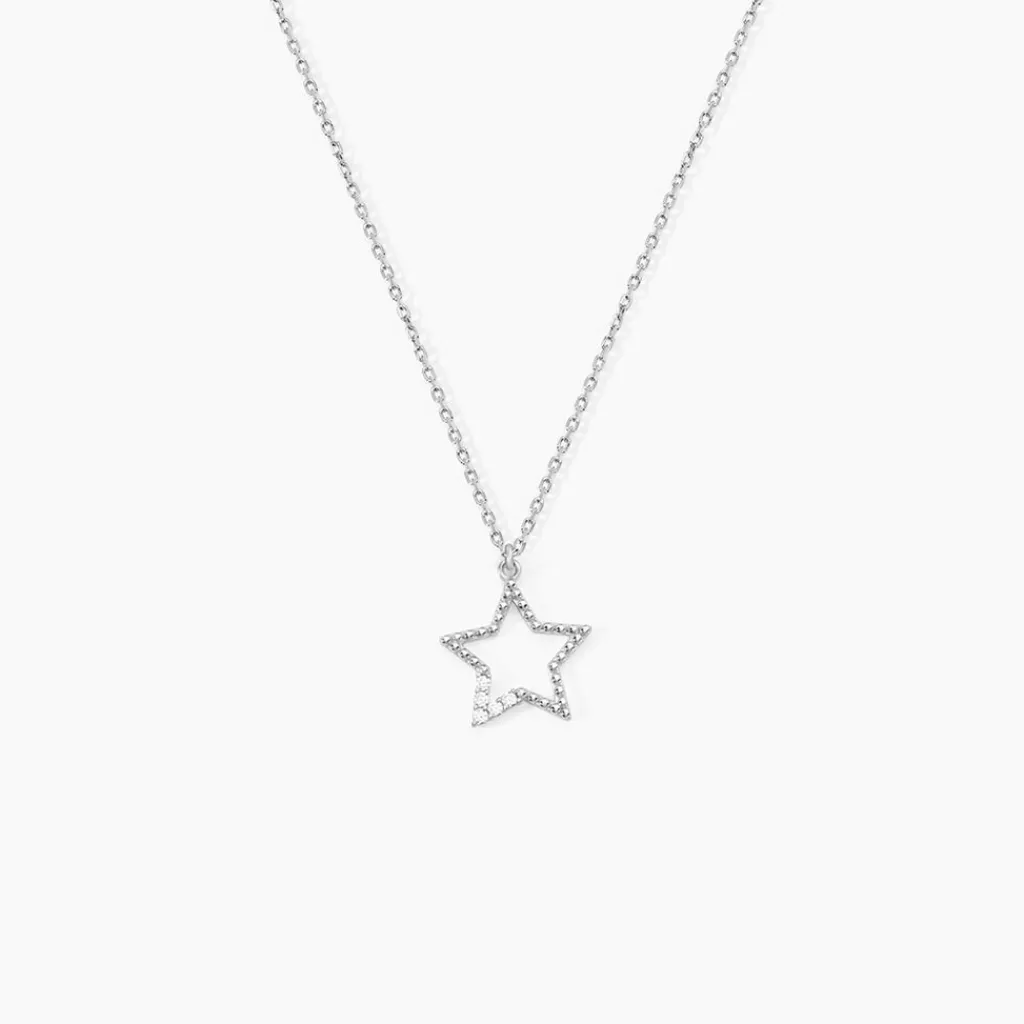 Collier Argent Blanc 925/1000 étoile Oxydes De Zirconium Maille Forçat 42+3cm
