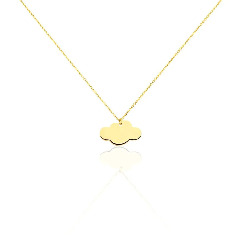 Collier Or Jaune 375/1000 Ligne Gravable Nuage Maille Jaseron 38cm