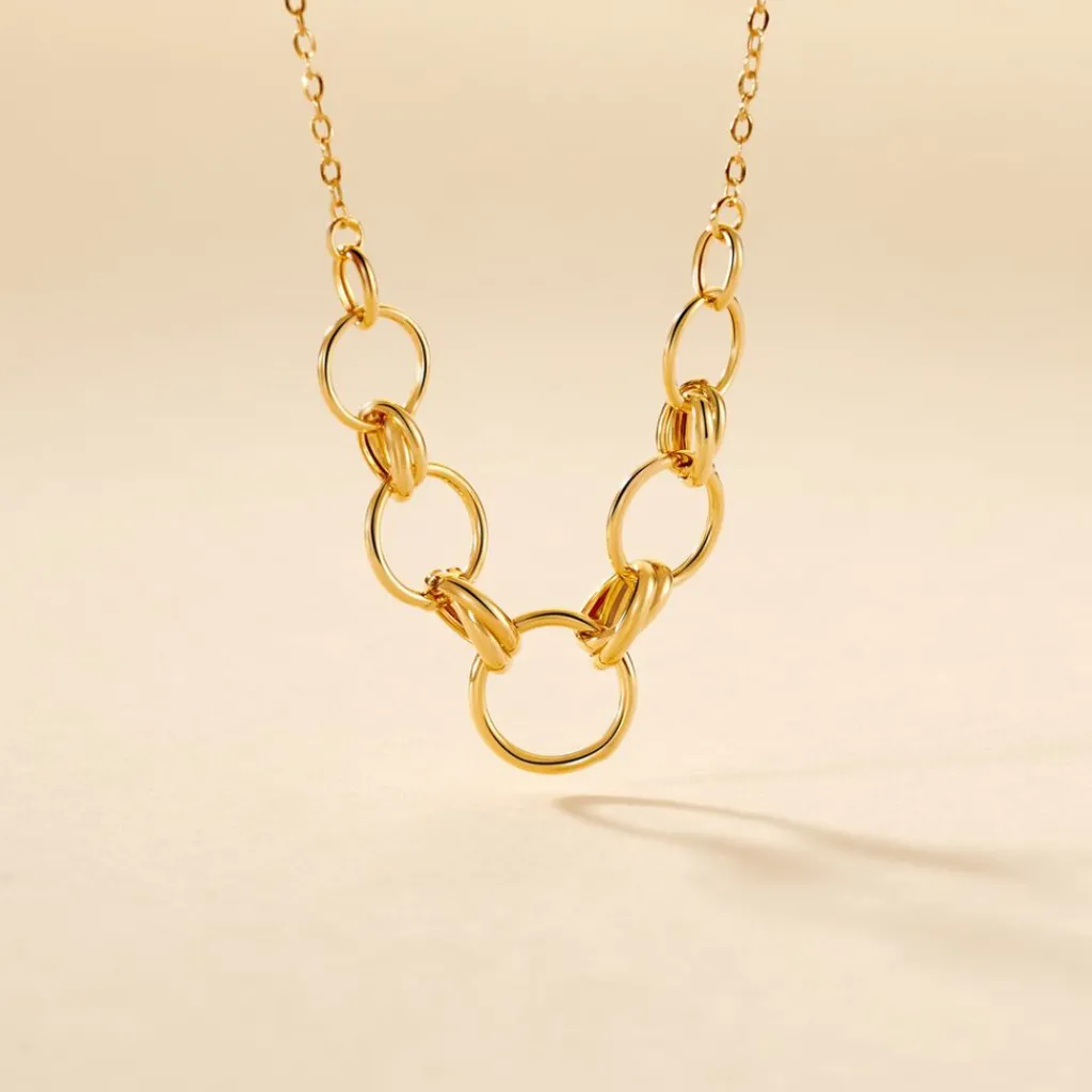 Collier Or Jaune 375/1000 Cercle Ajouré Alterné Avec Double Anneaux Oval Entrelacé Maille Forçat 42+3cm