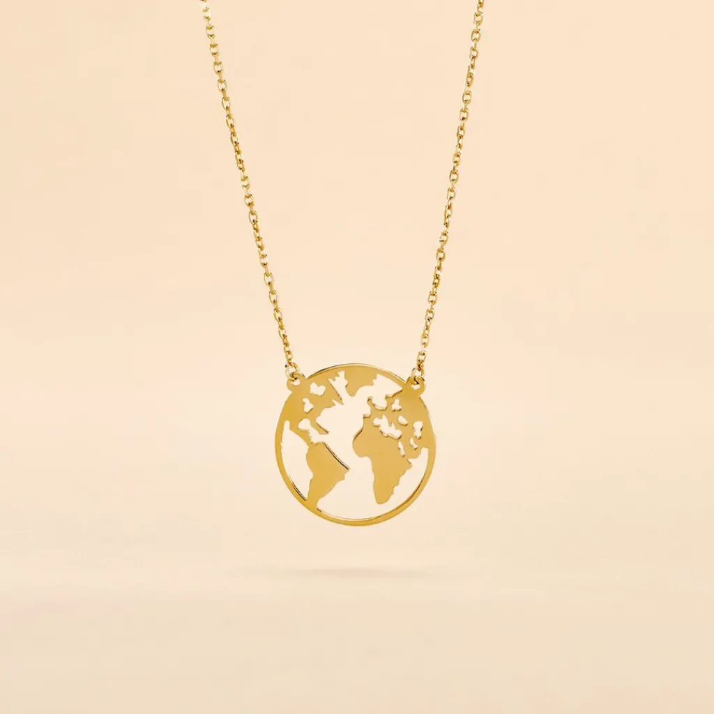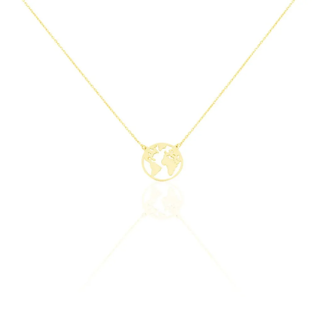 Collier Or Jaune 375/1000 Planete Monde Maille Forcat 42cm