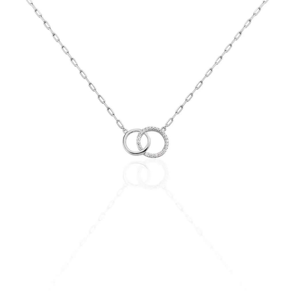 Collier Argent 925/1000 isabel Double Cercles Ajoures Entrelaces Sertis Griffes Oxydes De Zirconium Maille Cheval 45cm
