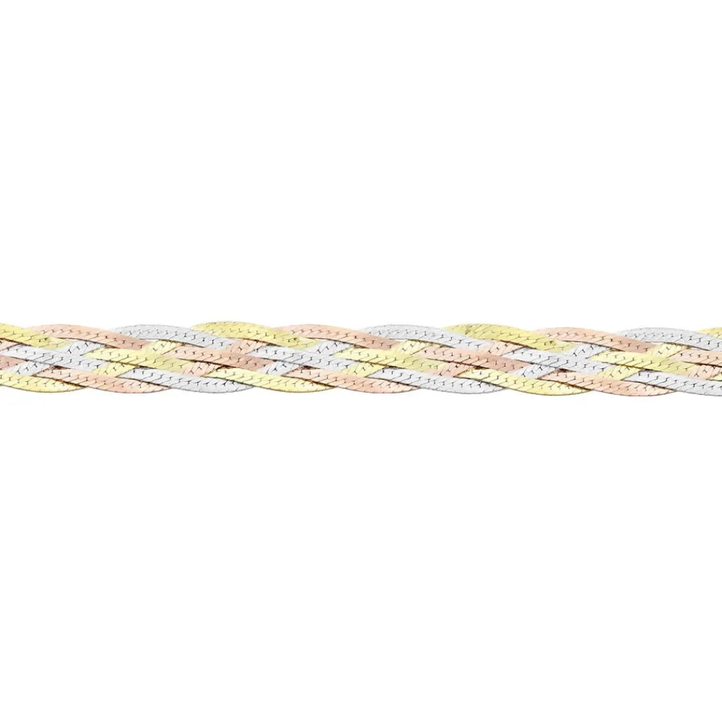 Collier Or Tricolore 375/1000 Tresse 6 Fils 5mm 42cm