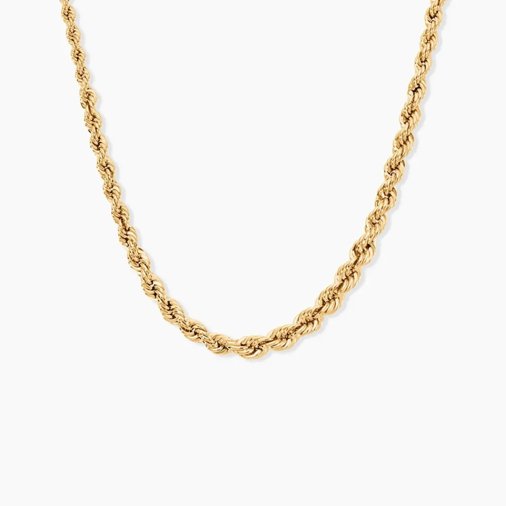 Collier Or Jaune 375/1000 Chute Maille Corde Largeur De 2.1mm A 4.2mm 50cm