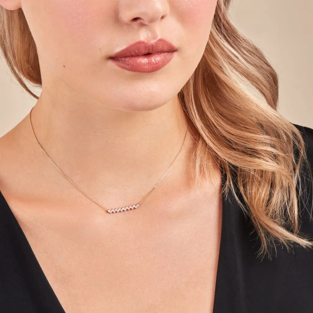 Collier Or Jaune 375/1000 Diamants Synthetiques 0.27cts Sertis Griffes Maille Forcat 40+2cm