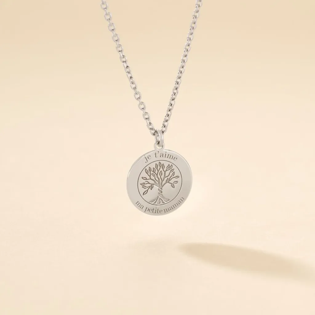 Collier Argent Blanc 925/1000 Pastille Arbre De Vie Message Je T’aime Ma Petite Maman Maille Forçat 42+3cm