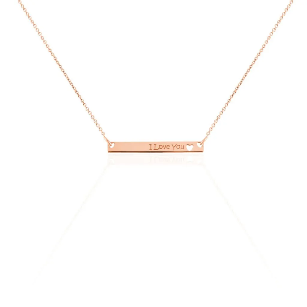 Collier Argent Rose Forme Barrette Message I Love You C艙ur Ajoure 42cm