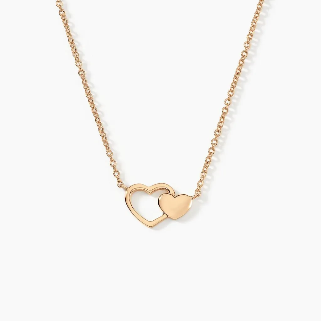 Collier Plaqué Or Jaune Coeurs Doubles Maille Forcat 44cm