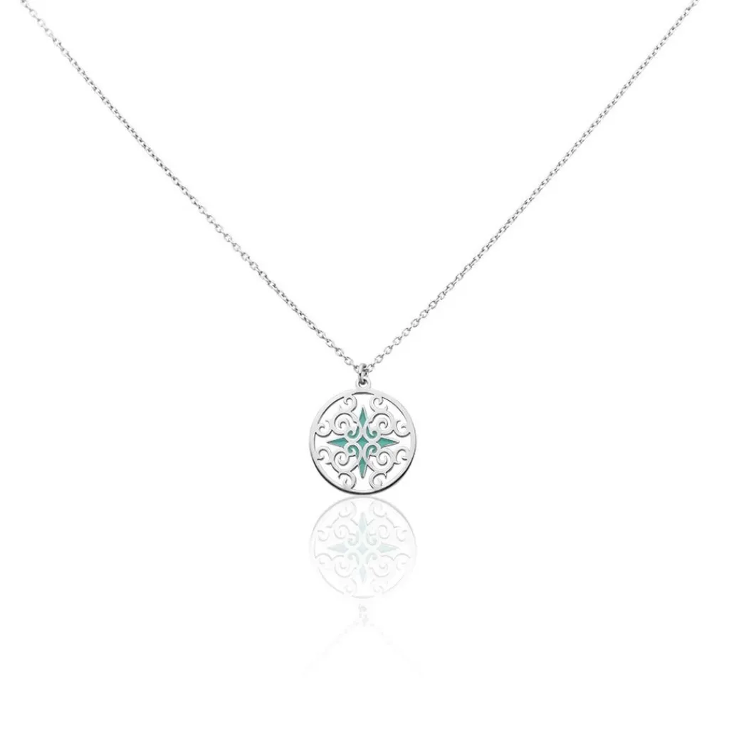 Collier Argent 925/1000 Rosace Email Turquoise Maille Forçat 45cm
