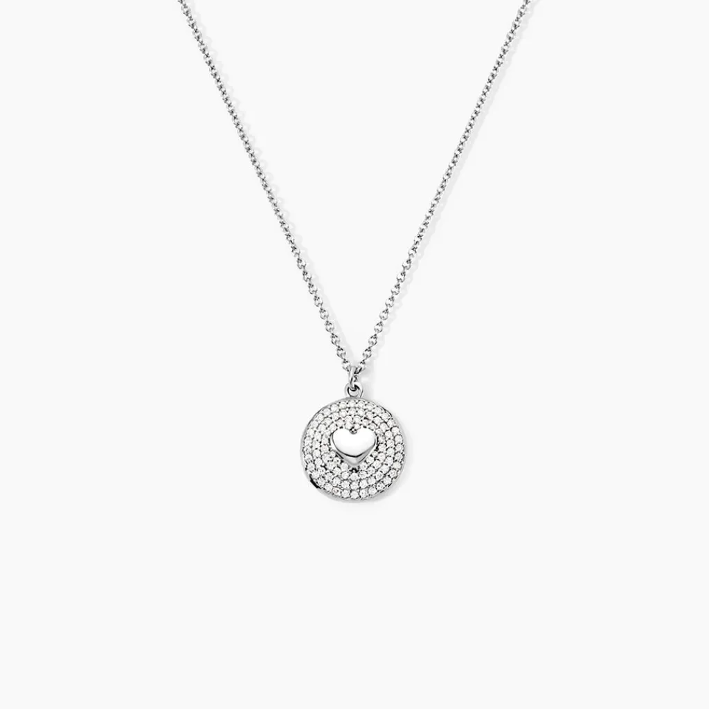 Collier Argent 925/1000 Pastille C艙ur Maille Forçat Pavage Oxydes De Zirconium 45cm