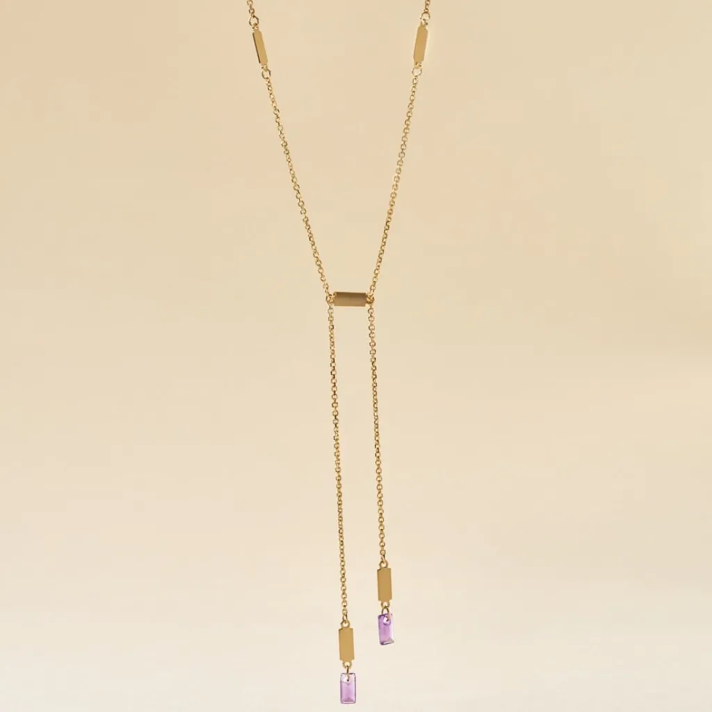 Collier Or Jaune 375/1000 Amethyste Violet Maille Forcat 40+2cm