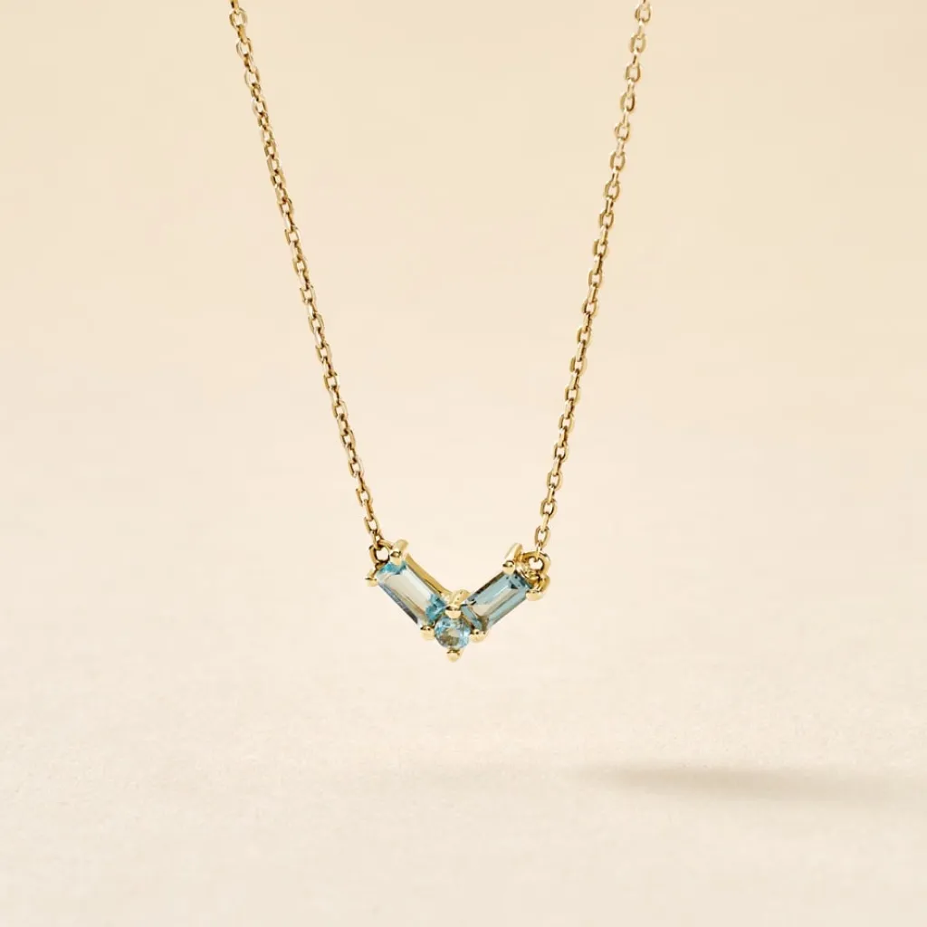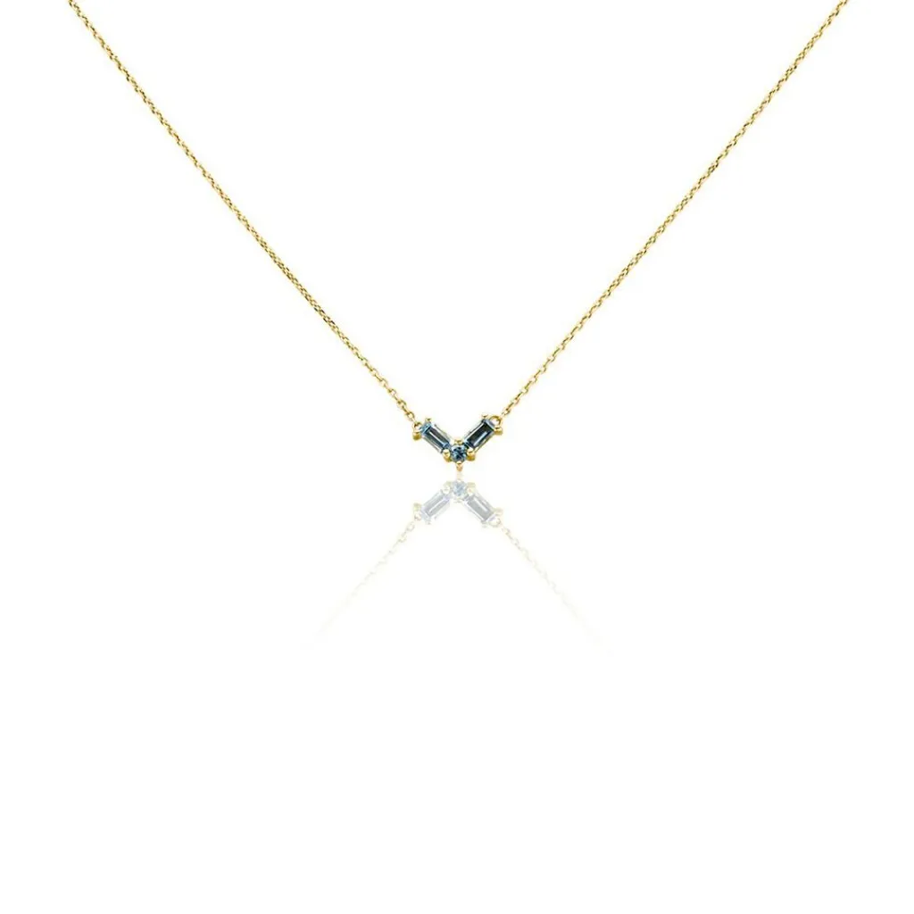 Collier Baguette Or Jaune 375/1000 Topaze Bleu Sky Serti 4 Griffes Maille Forcat 40+2cm