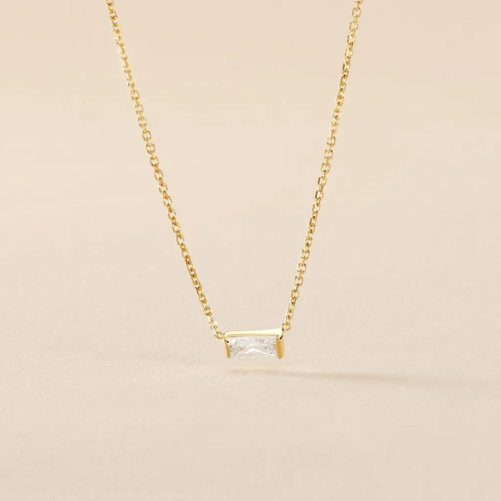 Collier Or Jaune 375/1000 Solitaire Oxyde De Zirconium Maille Forçat 42cm