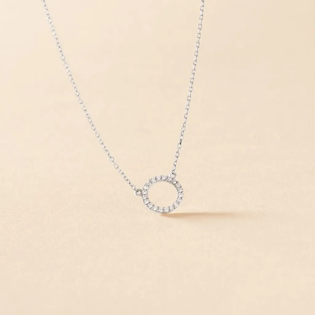 Collier Or Blanc 375/1000 Cercle Creux Pave Oxyde De Zirconium 42cm